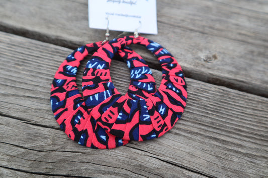 These stunning earrings are perfect for pairing with handbags or headwraps for any occasion. Choose from a variety of vibrant fabric patterns to find the perfect match for your wardrobe.