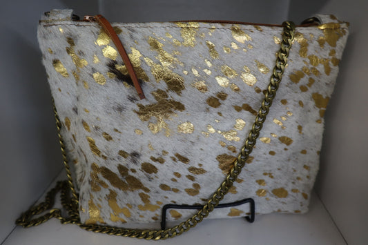 Acid-wash Crossbody Leather Bag for Women- Gold/White