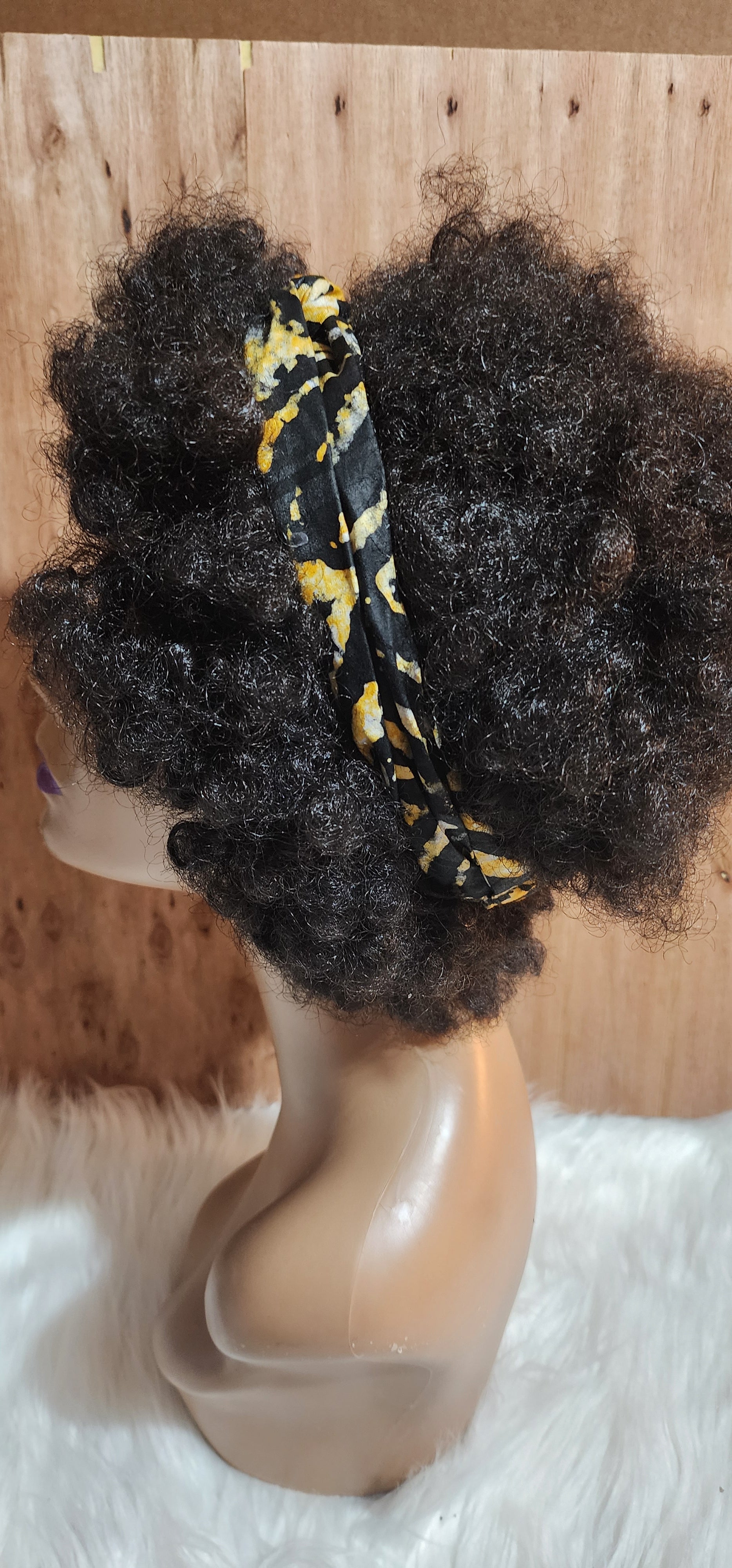 Bold twist-style headband made with African print fabric. Comfortable, secure, and easy to style.