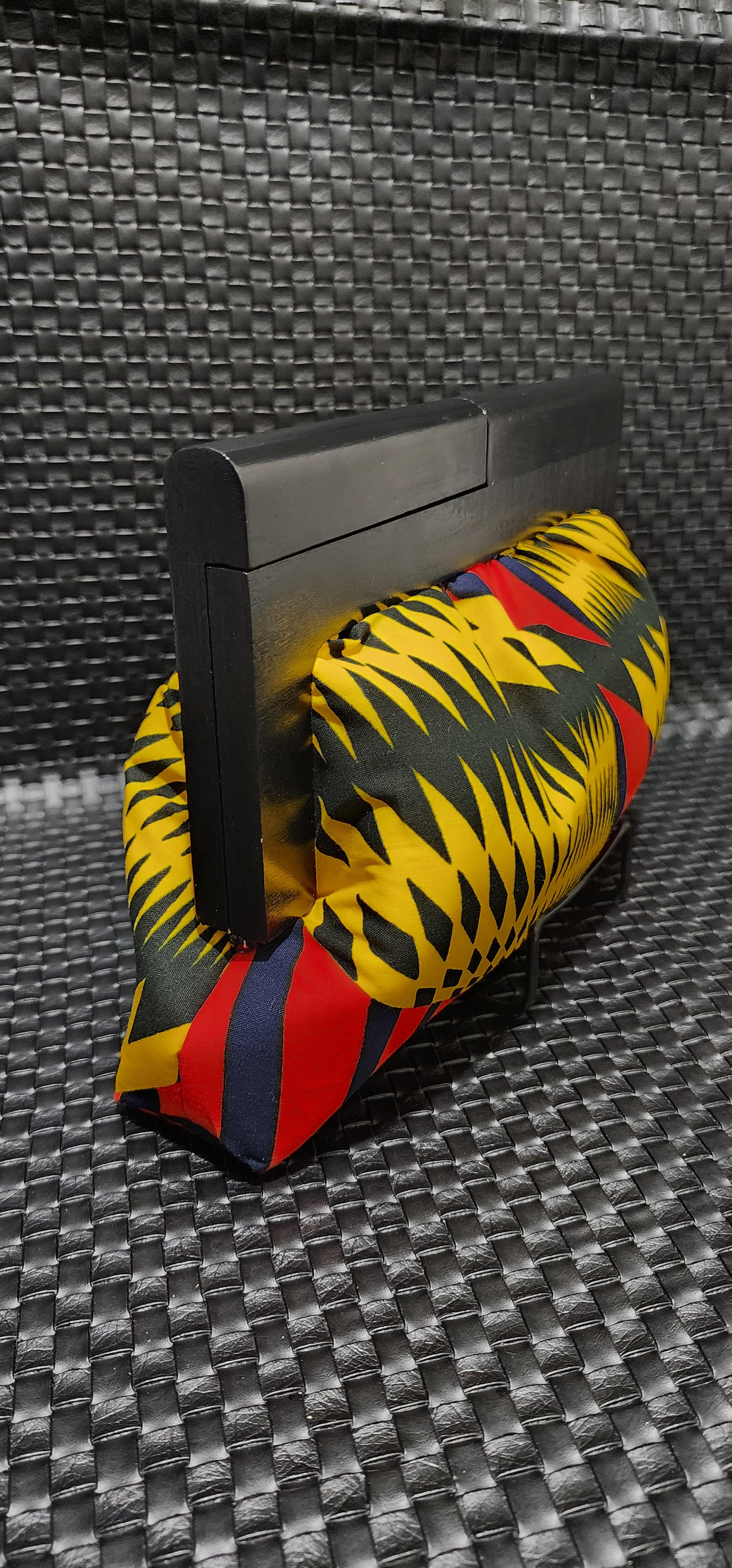 Bold Geometric Ankara Wood Frame Clutch - Yellow & Red